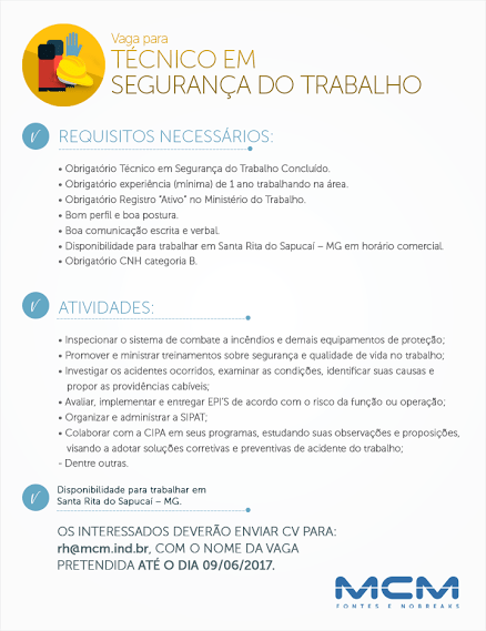 Oportunidade de Emprego – Técnico em Segurança do Trabalho