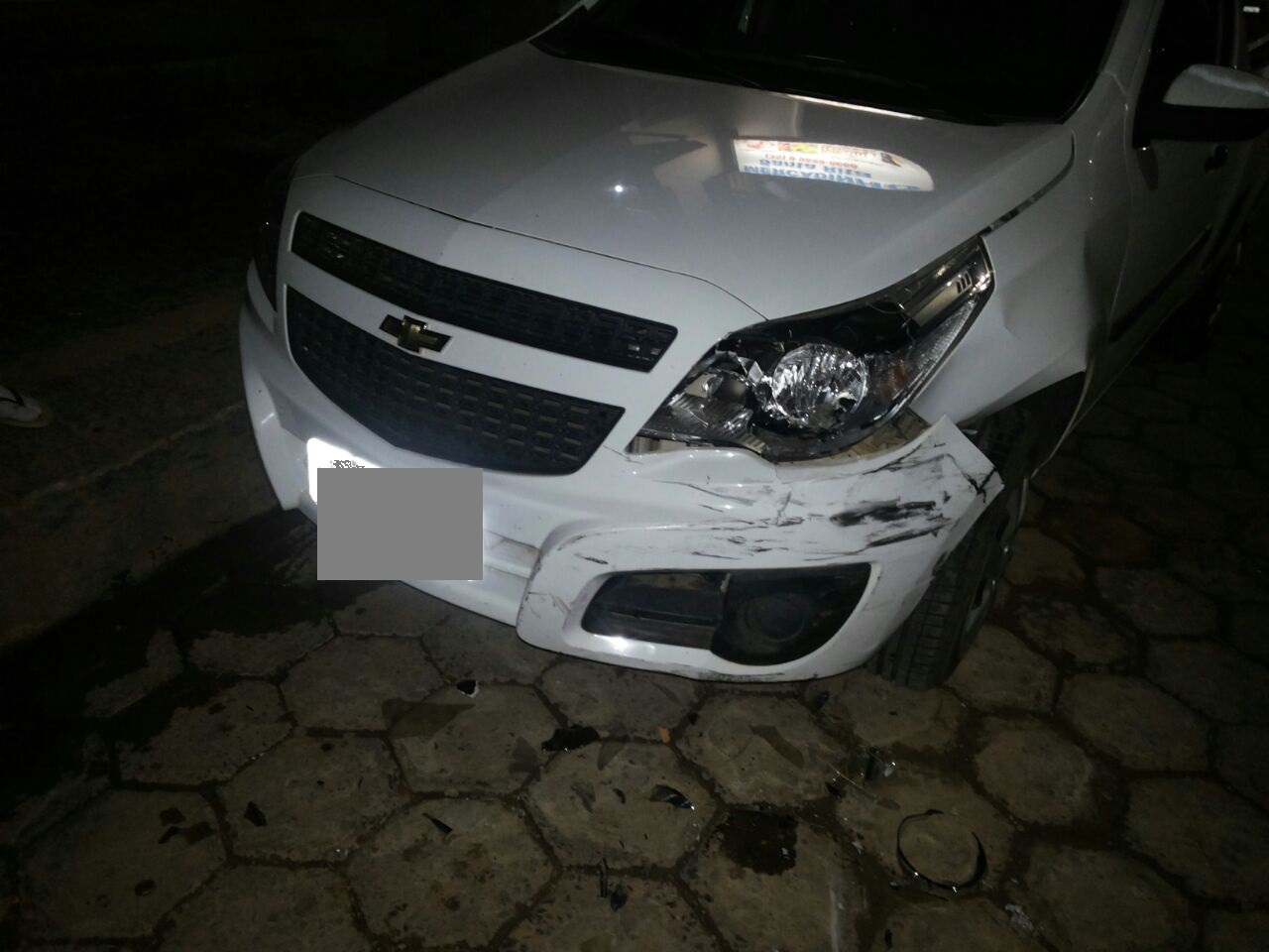 Em Santa Rita do Sapucaí, uma caminhonete Fiat Strada prata, cheia de mercadorias em alta velocidade bateu em uma caminhonete parada e fugiu em seguida no bairro Por do Sol.
