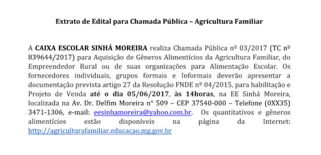 Extrato de Edital para Chamada Pública – Agricultura Familiar