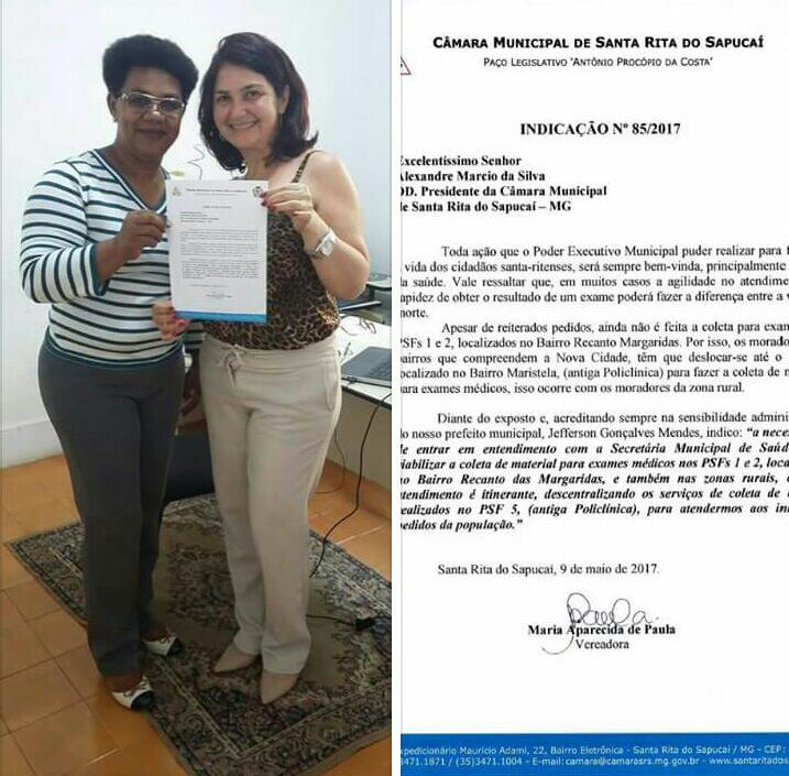 Em Santa Rita do Sapucaí, os moradores da Nova Cidade agradecem o empenho e a conquista da Vereadora Cida de Paula em conseguir junto à Secretaria Municipal de Saúde, a abertura de um Posto de Coleta de Sangue nos PSFs 1 e 2.