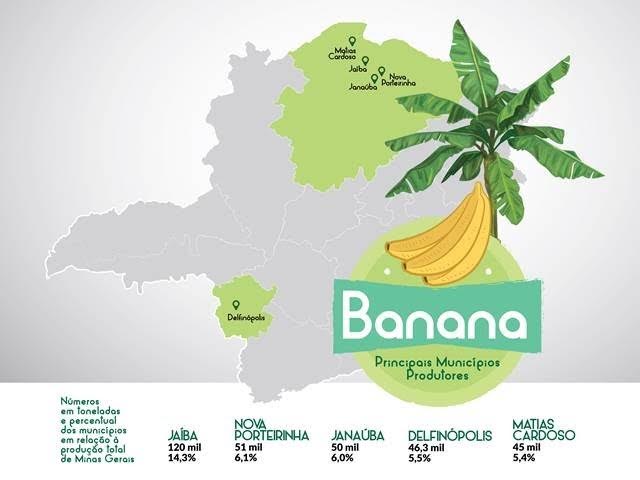 A bananicultura de todo o estado cresceu e se desenvolveu expressivamente nos últimos anos, mas, é no Norte de Minas que a produção se destaca. Responsável por quase metade da produção mineira, a região conta com cerca de 16 mil hectares de área colhida, sendo que 1/3 dela está na cidade de Jaíba, maior produtora no estado. E, para potencializar a banana mineira, a Empresa de Pesquisa Agropecuária de Minas Gerais (Epamig) desenvolve diversas pesquisas envolvendo a fruta na região.