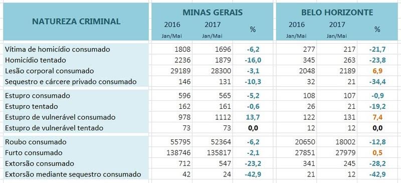 O resultado aparece na prática: os índices de criminalidade caíram nos cinco primeiros meses de 2017, contrariando uma série histórica de oito anos de crescimento dos crimes violentos no Estado. As ações fazem parte do programa Mais Segurança, trabalho estratégico que está sendo desenvolvido em Minas Gerais.