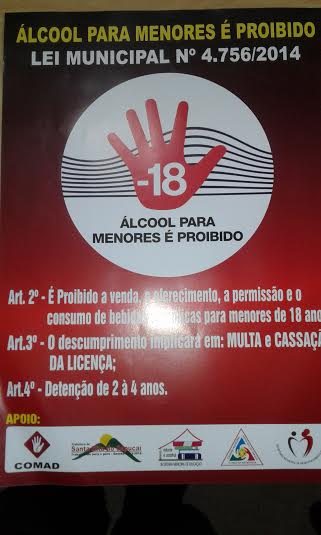 Em Santa Rita do Sapucaí, a Guarda Municipal iniciou na última quinta(06),a fiscalização e entrega de folders da Lei Municipal 4.756/2014, que fala da proibição, venda, oferecimento e a permissão de consumo de bebidas alcoólicas para menores de 18 anos.