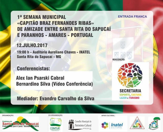 O vínculo histórico e o potencial de aproximação do Brasil com Portugal preenchem a programação da primeira edição da Semana Municipal Capitão Braz Fernandes Ribas de Amizade entre Santa Rita do Sapucaí e Paranhos – Amares. O evento inédito em homenagem ao português que fundou o município sul-mineiro acontece amanhã quarta-feira (12), a partir das 19h, no Auditório Aureliano Chaves do Instituto Nacional de Telecomunicações (Inatel), com entrada franca.