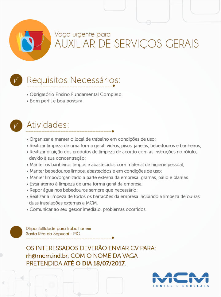 Oportunidade de Emprego – Auxiliar de Serviços Gerais