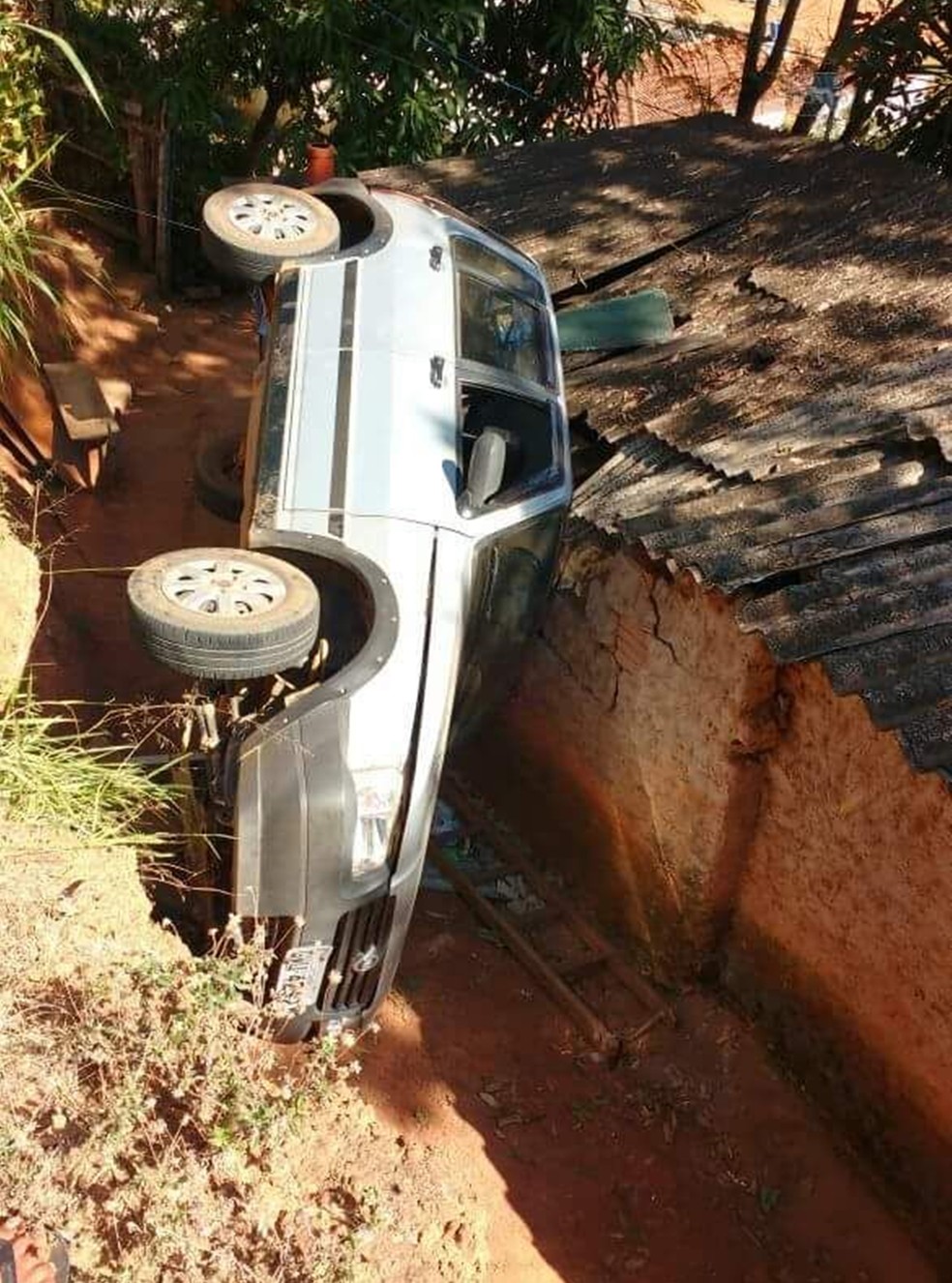 A casa que foi atingida fica abaixo do nível da rua. A mulher e outras duas pessoas que estavam no carro não ficaram feridas.