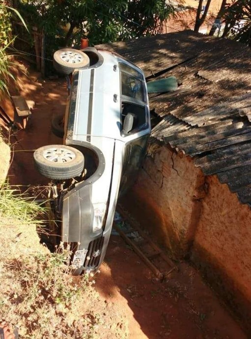 Em Itajubá, um carro foi parar sobre o muro de uma cozinha de uma casa na manhã de ontem(18) no bairro Capetinga.