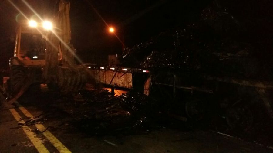 Carreta pega fogo na BR459 em Santa Rita