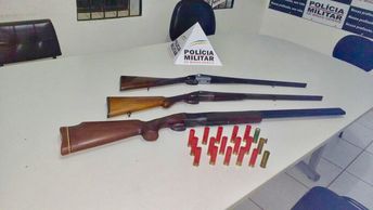 Foram apreendidas uma espingarda calibre 12 e duas calibre 36, além de 16 cartuchos deflagrados e três intactos.