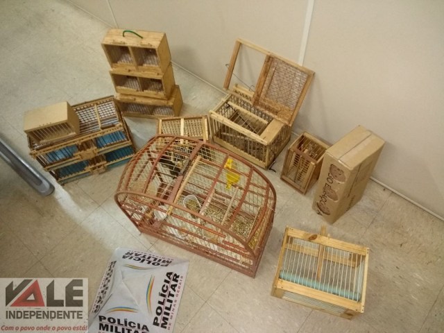 sua residência, na cidade de Pouso Alegre, foi localizado alguns pássaros sem registro e sem anilhas, bem como várias gaiolas, objetos para cativeiro e petrechos para captura de pássaros