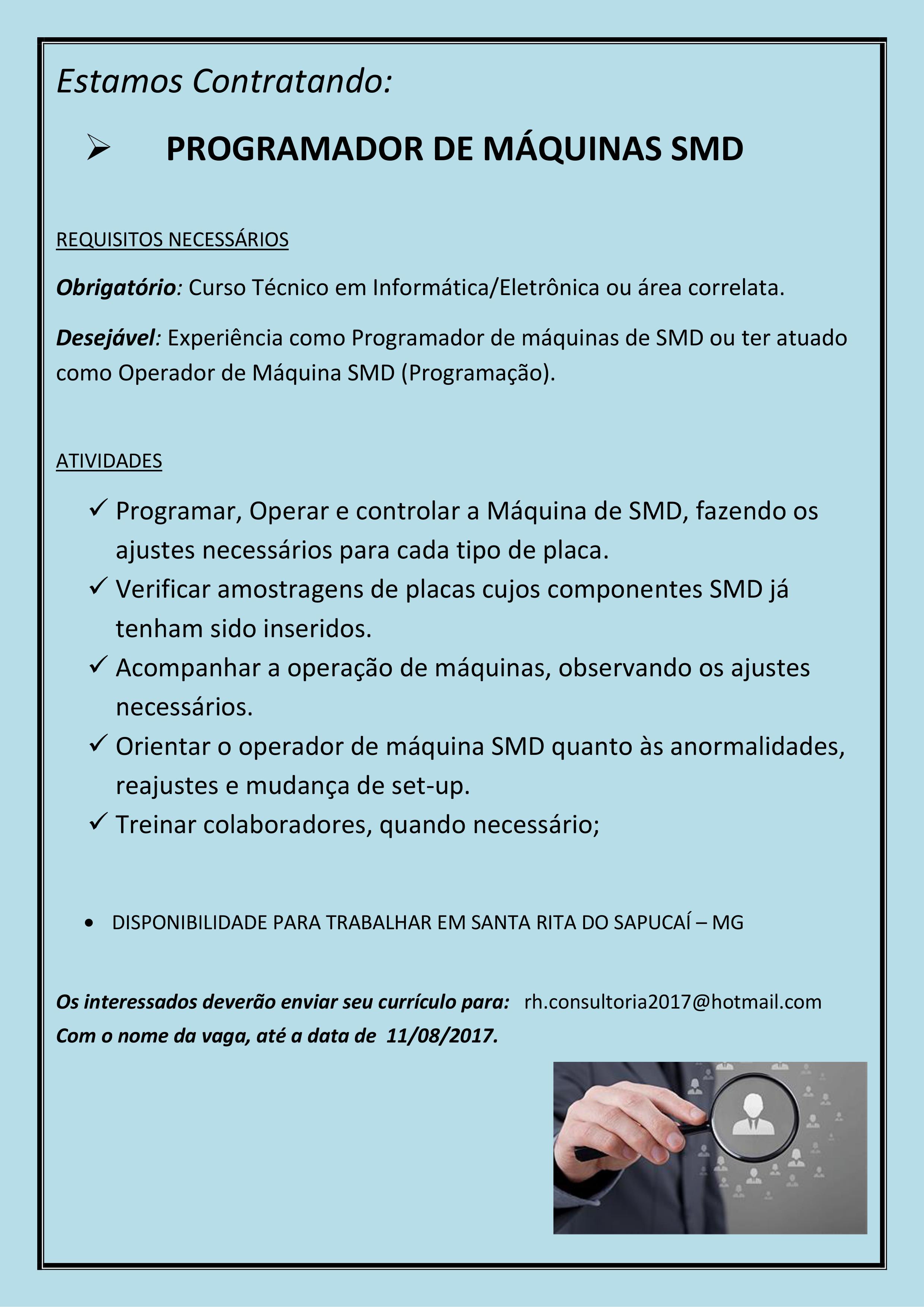 Oportunidade de Emprego – Programador de Máquinas SMD