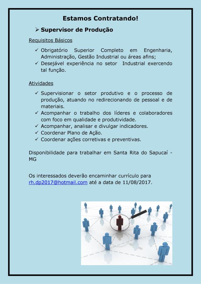 Oportunidade de Empego – Supervisor de Produção
