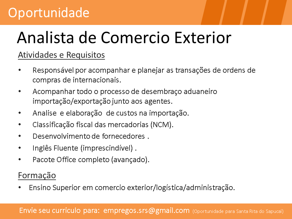 Oportunidade de Emprego – Analista de Comércio Exterior