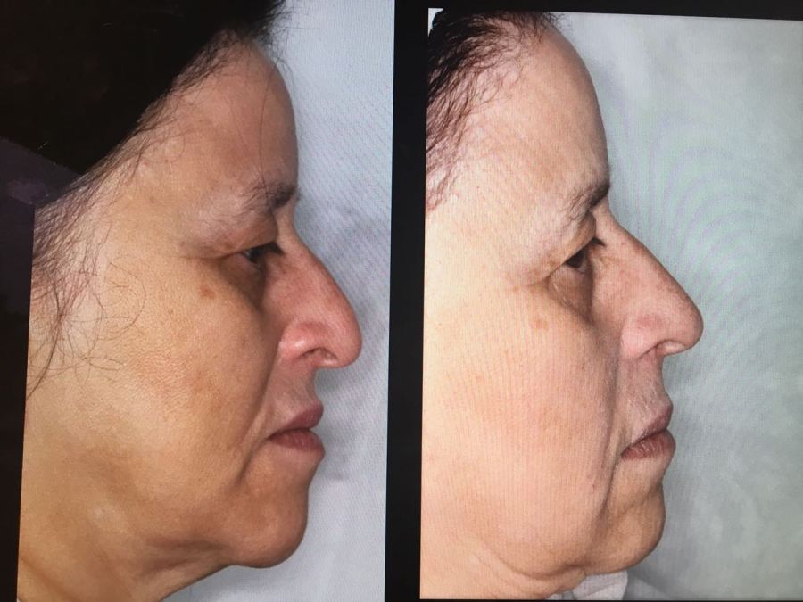 Arqueamento da ponta do nariz e leve preenchimento do dorso. Notem a fantástica mudança imediata.