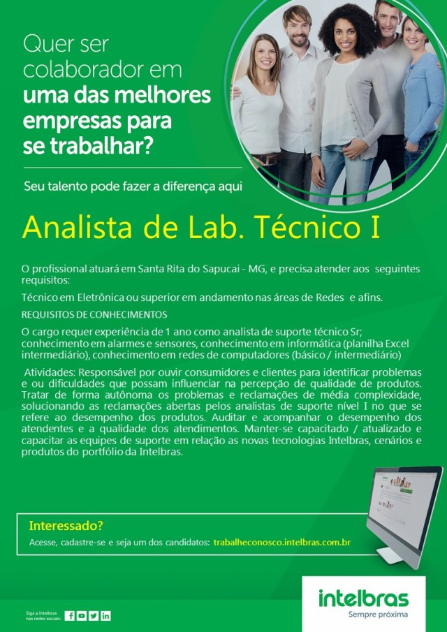 Oportunidade de Emprego – Analista de Lab. Técnico I