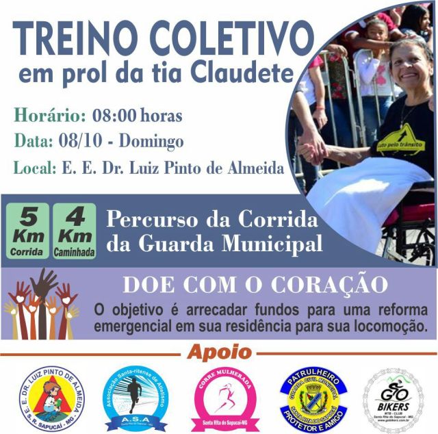 Teremos um Treino Coletivo em Prol da Tia Claudete (que teve a perna amputada no acidente de trânsito).