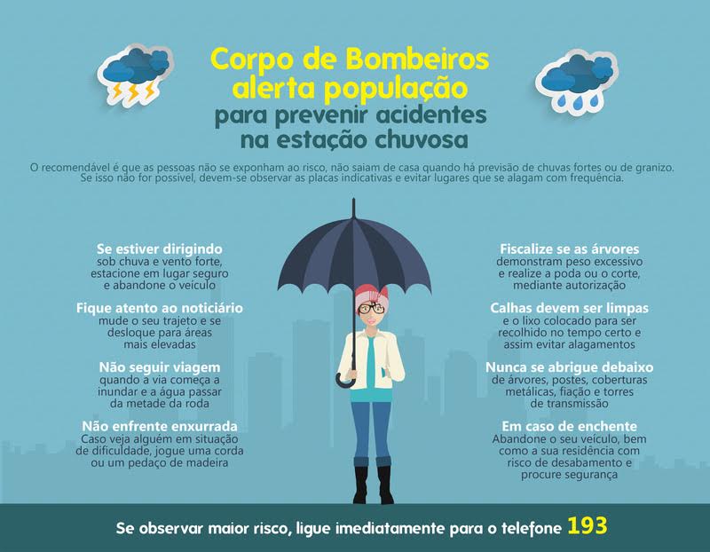 Segundo a tenente do Corpo de Bombeiros na capital, Andrea Coutinho, a estação chuvosa é propícia a tempestades, por isso todas as precauções precisam ser tomadas para a busca de abrigos seguros. Nessa época aumentam as ocorrências e os danos materiais com a queda de árvores mais frequentes do que em outras estações.