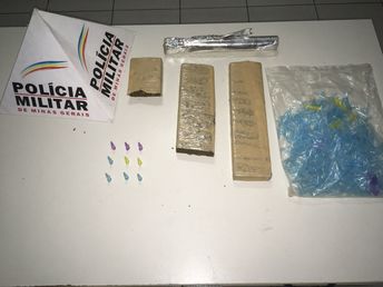 Ele negou a participação no roubo, entretanto, foram localizados dentro de um tênis nove pinos de cocaína. Em outra parte da casa foram localizados 03 tabletes de maconha, um saco contendo vários pinos vazios utilizados para acondicionamento de cocaína.