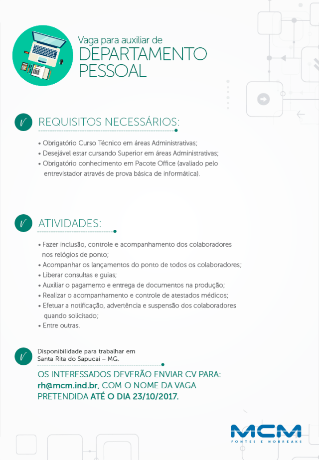 Oportunidade de Emprego – Auxiliar de Departamento Pessoal