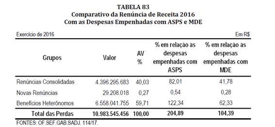 Em 2016, quando o total das renúncias chegou a R$10,983 bilhões, a situação foi semelhante, mas com características que merecem ser ressaltadas: