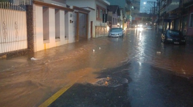 Em Pouso Alegre, a forte chuva de ontem(27) a noite, deixou ruas alagadas e bairros sem energia elétrica.