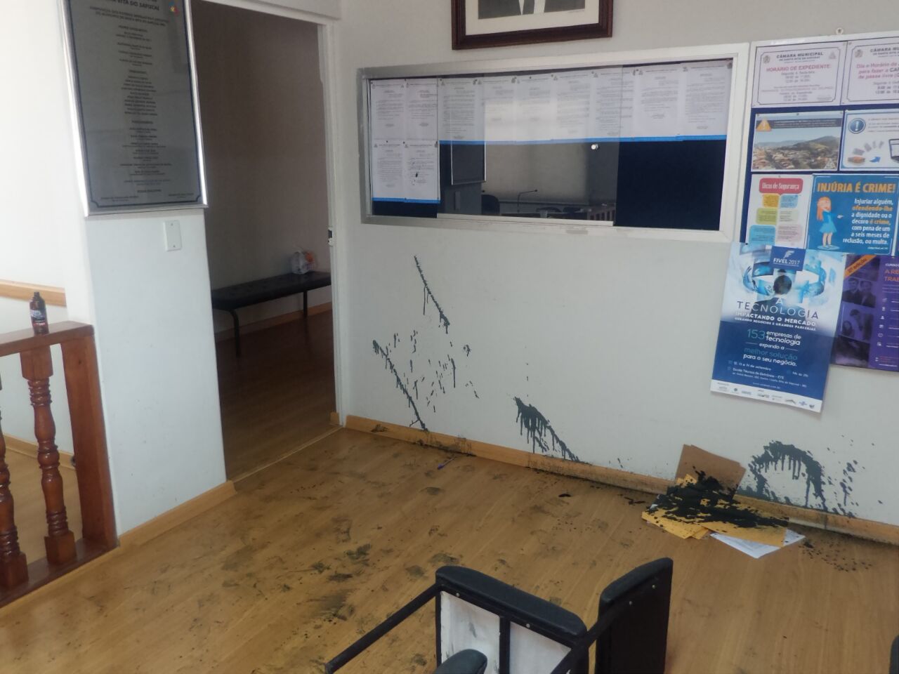 Homem invade Câmara Municipal e joga tinta nas paredes e nos presentes