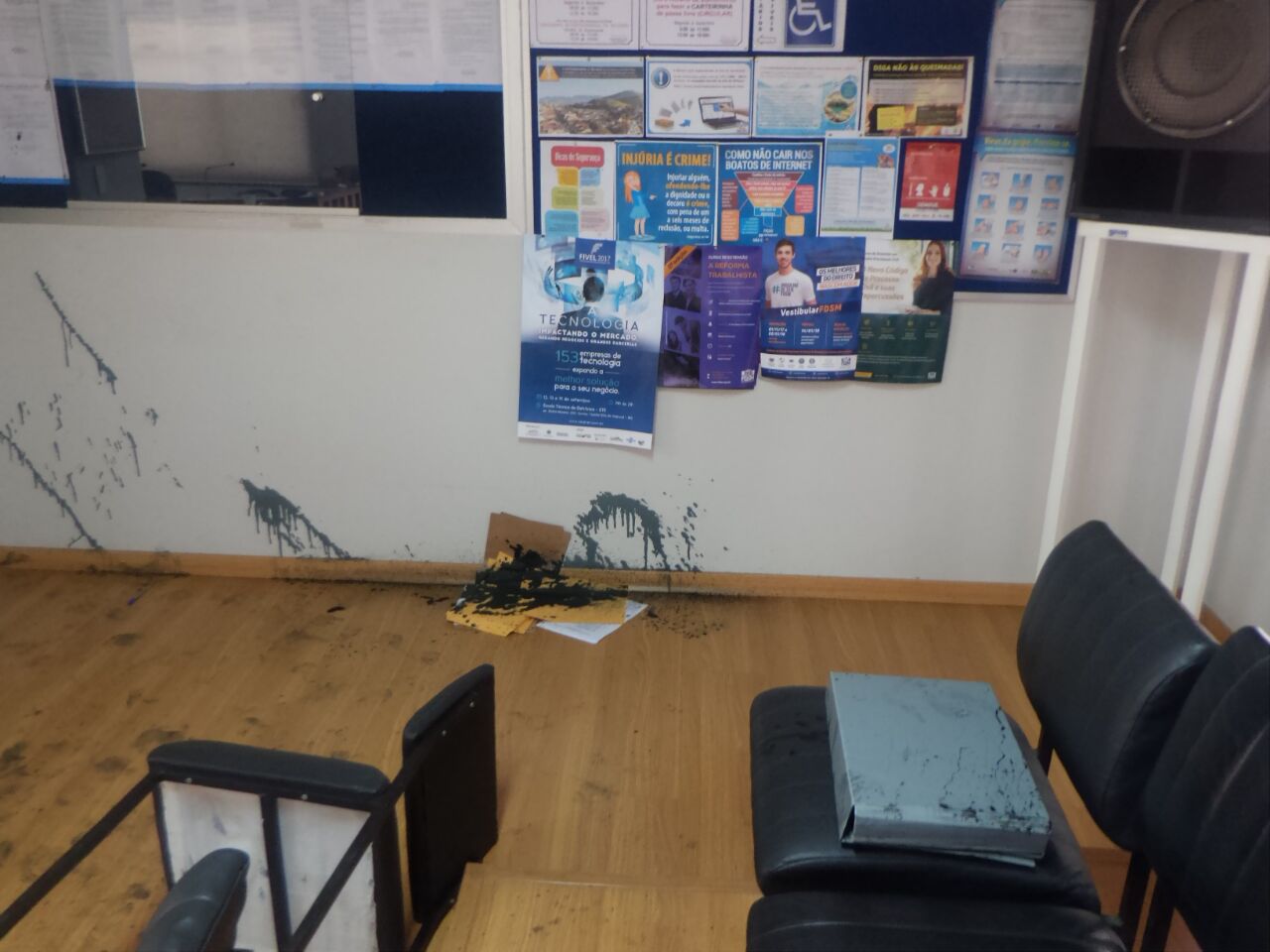 Homem invade Câmara Municipal e joga tinta nas paredes e nos presentes