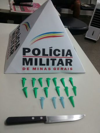 Ao fazer busca, os policiais encontraram cinco pinos e ao ir à residência do suspeito, outros 10 pinos foram localizados.