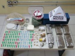 Durante operação, os militares foram até a casa da suspeita, onde encontraram sete tabletes de maconha, 17 porções de crack, um tablete de pasta base de pasta base e 100 pinos de cocaína, outros pinos vazios e com adesivo, e duas balanças de precisão.