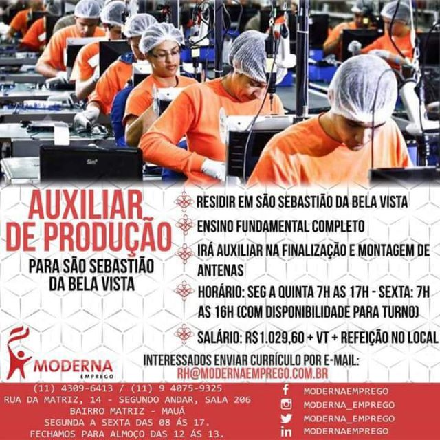 Oportunidade de Emprego – Auxiliar de Produção