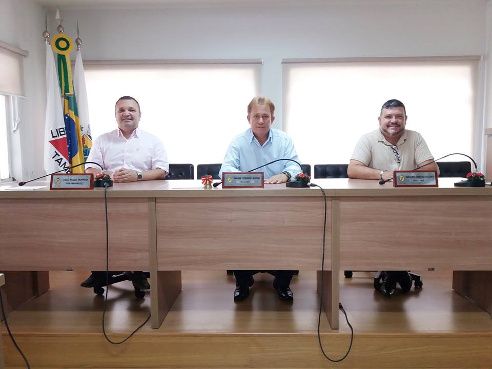 Em Santa Rita do Sapucaí, no dia dois de janeiro, primeiro dia útil do ano, a nova mesa diretora da Câmara Municipal iniciou seus trabalhos com reuniões, despachos internos, edição de portarias e ofícios. Eleitos para dirigir os trabalhos do Poder Legislativo santa-ritense no ano de 2018, os vereadores Vagner Gamarra (presidente), João Paulo Sampaio (vice-presidente) e Giácomo Costanti (secretário) mostram-se entusiasmados e focados em desenvolver um trabalho inovador.