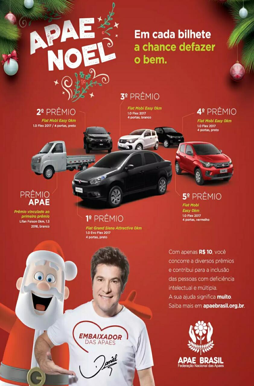 Vamos mostrar mais uma vez a todo o Brasil que além de concorrer a prêmios, os participantes podem ajudar milhares de pessoas com deficiência intelectual e múltipla, atendidas pelas mais de duas mil Apaes de todo o Brasil.