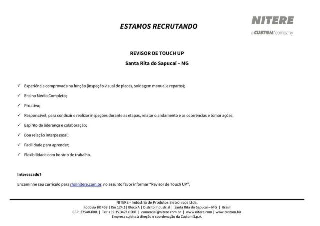 Oportunidade de Emprego – Revisor de Touch up