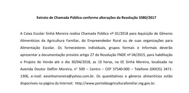 Extrato de Chamada Pública conforme alterações da Resolução 3380/2017