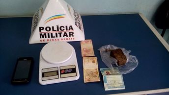 Durante as buscas, o autor aparentou bastante nervosismo. Ao ser dada busca pessoal em suas vestes, foi encontrado um tablete de maconha, além de dinheiro. Em seguida, foi encontrada uma balança de precisão no armário da cozinha, além de um aparelho celular sem procedência.