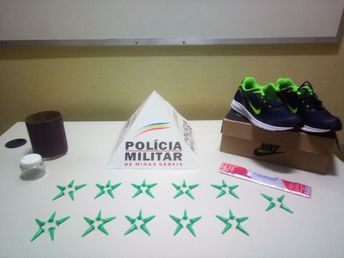 As familiares do infrator acionaram a Polícia Militar após as ameaças de agressão. Ao chegar no local, no quarto do menor foram apreendidos 54 pinos de cocaína e um par de tênis novo, de procedência duvidosa.