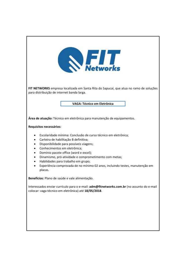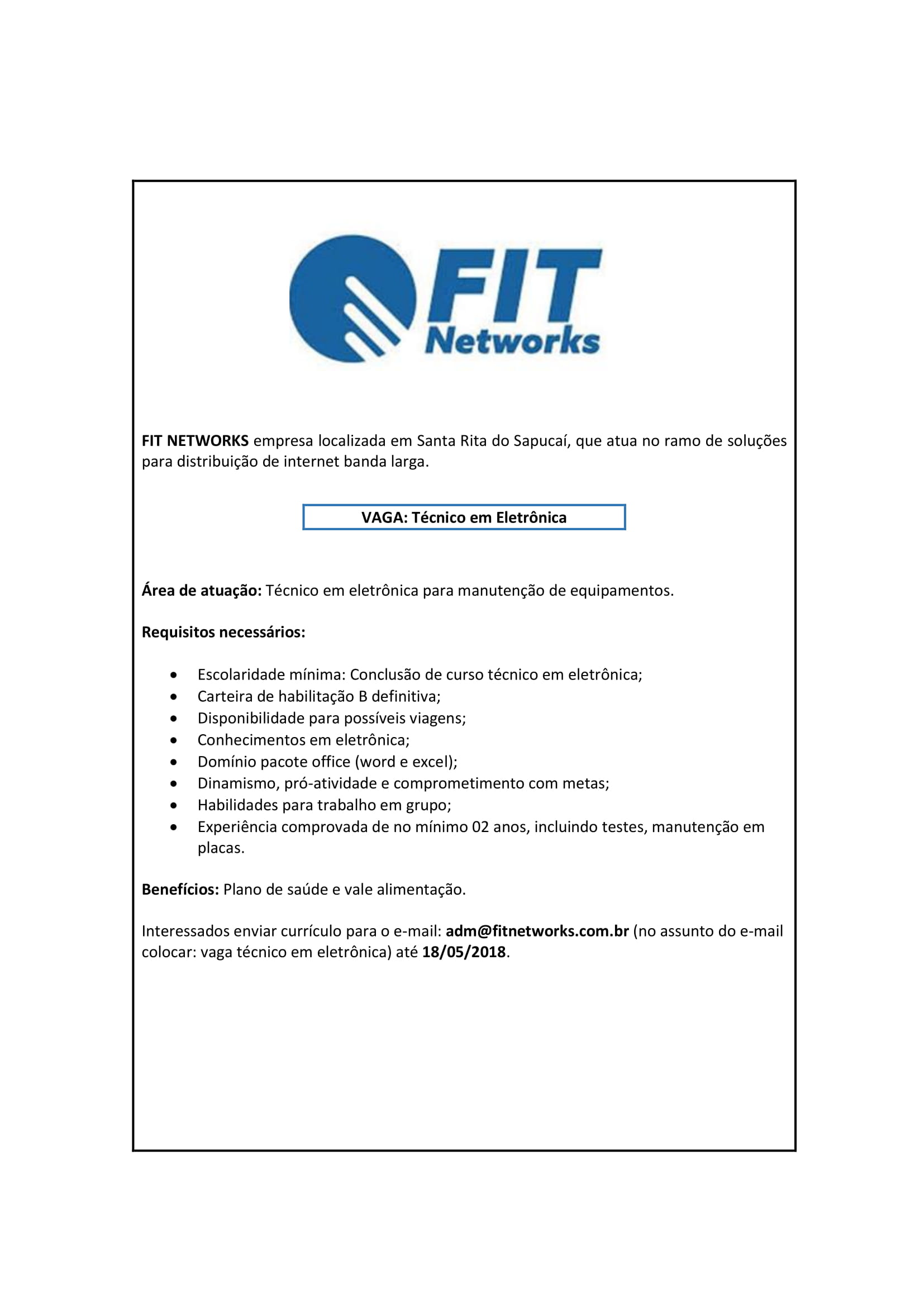 Oportunidade de Emprego – Técnico em Eletrônica