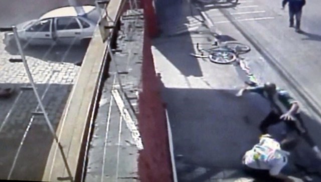Vídeos de câmeras de segurança da região flagraram o momento em que ele acelera contra um ciclista na avenida Vereador Antônio da Costa Rios, no bairro São Geraldo. Após o impacto, o homem é arremessado no portão de uma fábrica. O carro ainda invade uma empresa e atinge quatro funcionários.