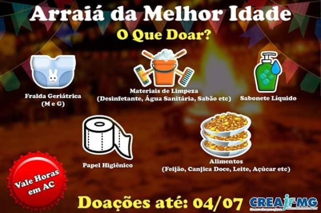Nossa equipe Crea Minas Júnior está organizando uma Festa Junina no Asilo de Santa Rita do Sapucaí e queremos pedir sua colaboração!