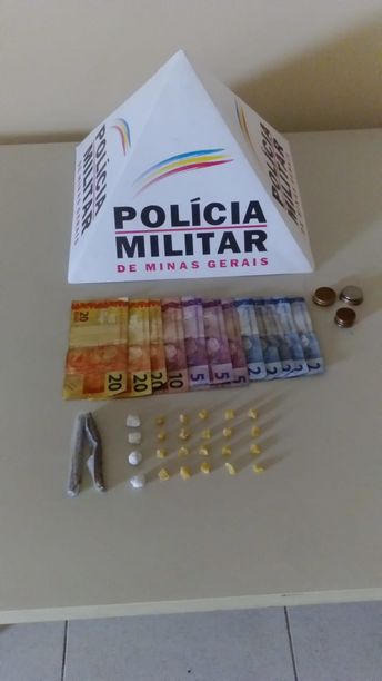 Com a abordagem, foram encontrados 98,50 reais em busca pessoal. E em um cabo de saída de água pluvial, os policiais encontraram 20 pedras de crack in natura e quatro embaladas, além de duas buchas de maconha.