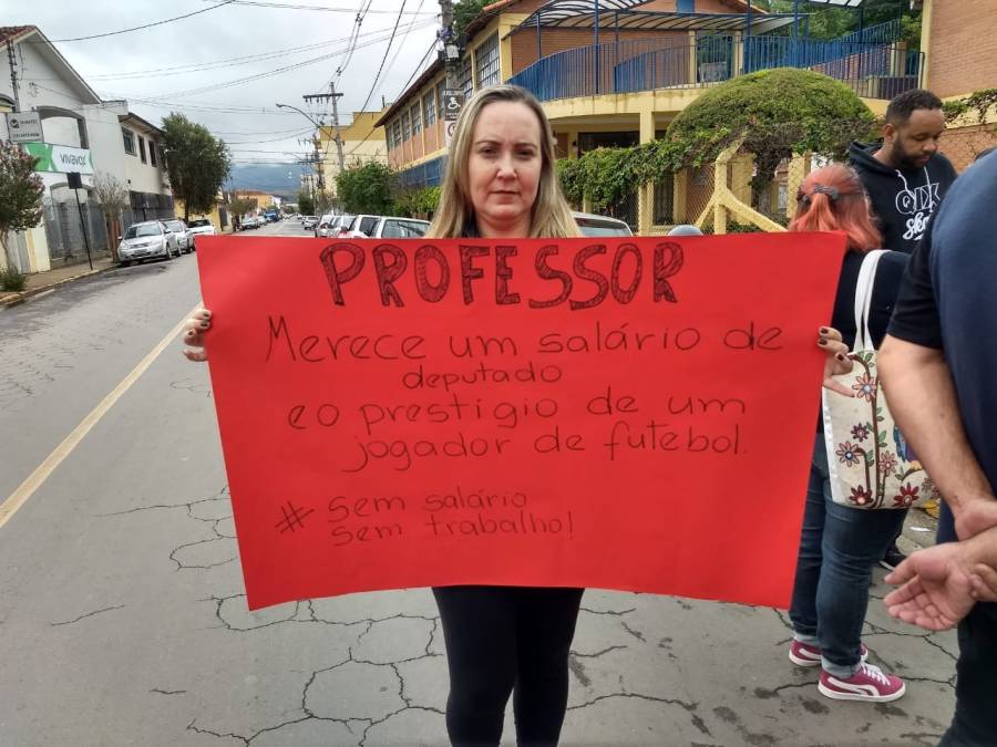 Professores realizam manifestação contra o não pagamento dos salários