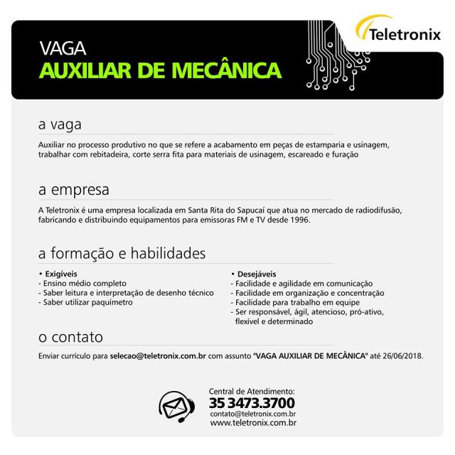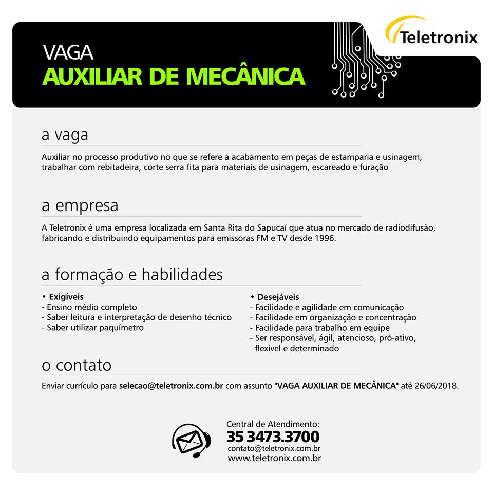Oportunidade de Emprego – Auxiliar de Mecânica