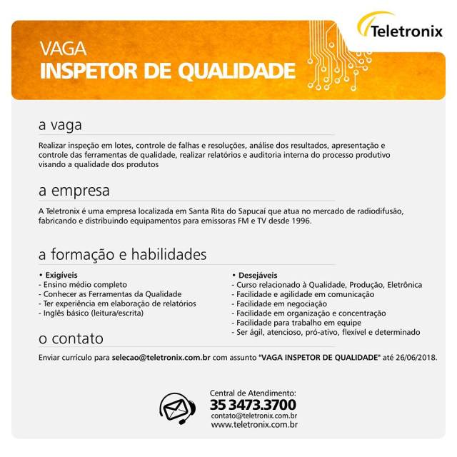 Oportunidade de Emprego – Inspetor de Qualidade