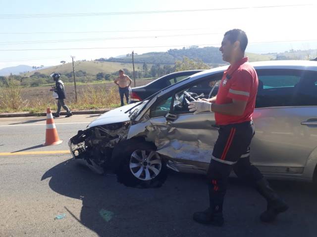 Em Santa Rita do Sapucaí, dois veículos bateram de frente na BR 459.