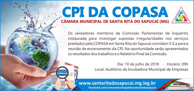 Em Santa Rita do Sapucaí, após 240 dias de trabalho, chegou ao final a CPI da COPASA instaurada em 06 de Novembro de 2.017.