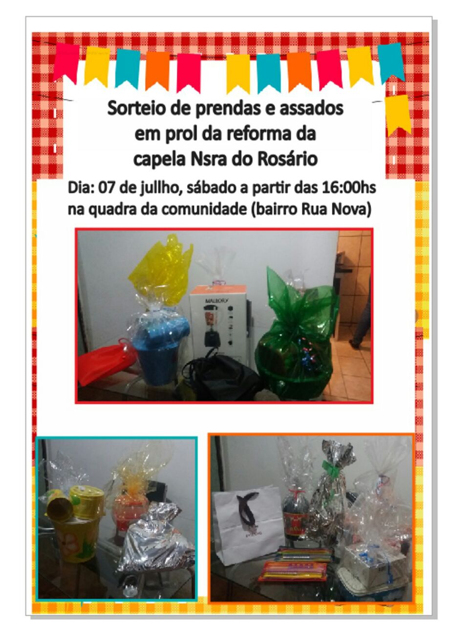 Sorteio de Prendas e Assados em prol da reforma da Capela do Rosário