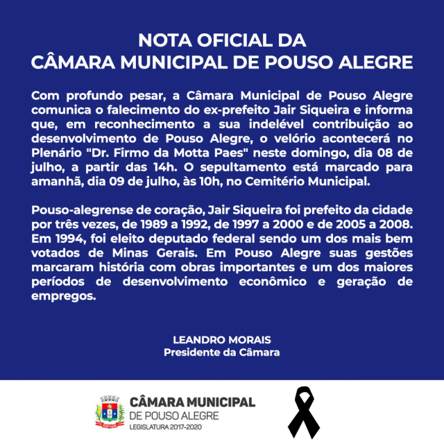 NOTA OFICIAL DA CÂMARA MUNICIPAL DE POUSO ALEGRE