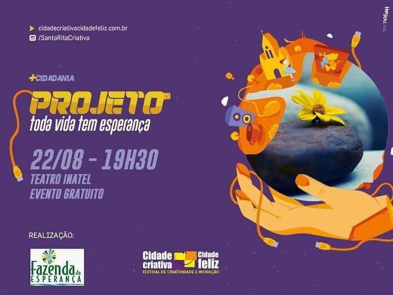 E com satisfação que a Fazenda da Esperança, participante do evento Cidade Criativa Cidade Feliz, traz o projeto “TODA VIDA TEM ESPERANÇA” – um show com músicas e depoimentos de homens e mulheres que venceram o desafio das drogas na Fazenda.