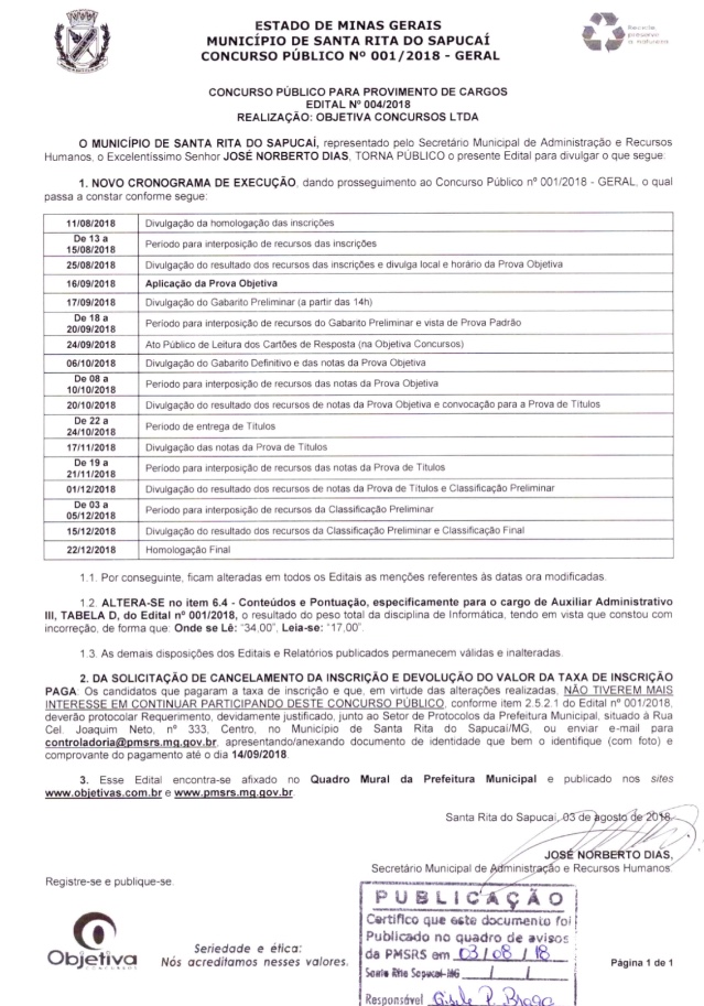 Retomada do Concurso Público da Prefeitura Municipal de Santa Rita do Sapucaí