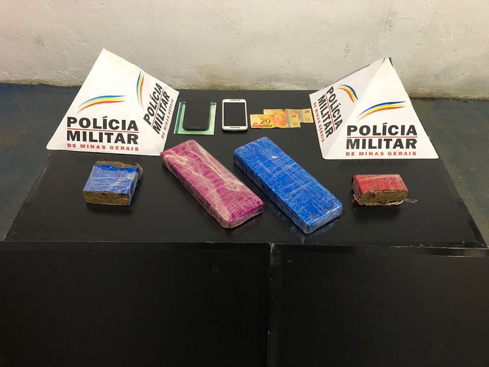 Os policias procederam a intervenção policial e encontraram a quantia de três tabletes de substância prensada, com aparência e forte odor de maconha, que o passageiro tentou dispensar. O condutor do veículo tentou evadir-se, entretanto foi impedido. Durante busca no interior do veículo os militares ainda encontraram outro tablete da mesma substância, aparentando ser maconha.
